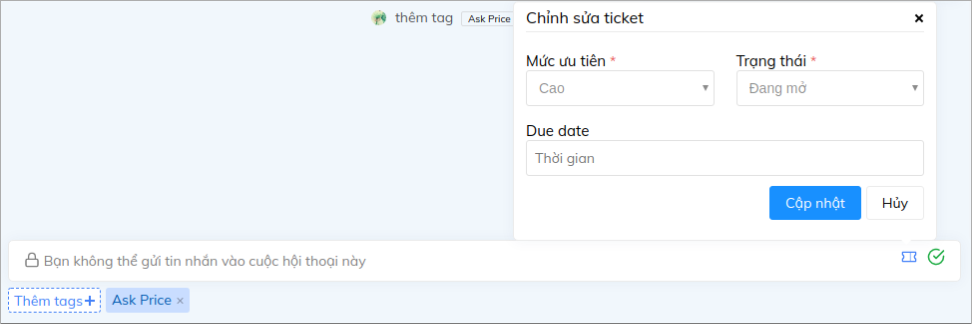Trong qúa trình xử lý Ticket, Agent cần lưu ý cập nhật thời gian xử lý Ticket để chủ động trong việc hỗ trợ khách hàng:
