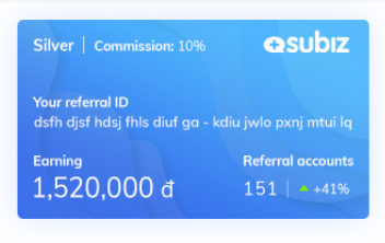 Subiz có ba mức hoa hồng như sau: